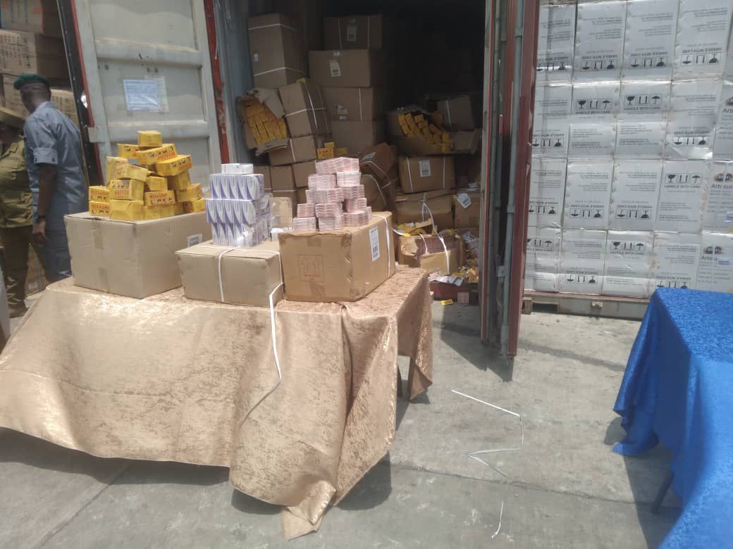 According to him, among the seizures was a 40-foot container loaded with expired pharmaceutical products, including Mixagrip Cold Caplets, Ladinax tablets, Chloroquine injections and Diclofenac tablets.